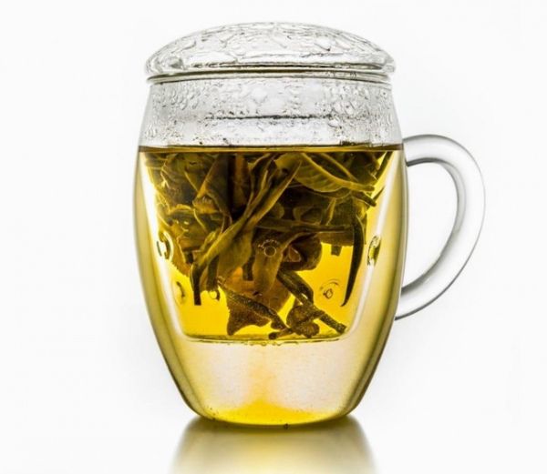 3-teiliges Creano Teeglas mit Glasdeckel und Sieb.